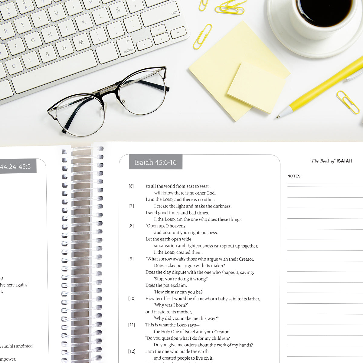 Our Spiral Bible™ is designed with wide margins, thick premium paper, and a durable spiral binding—making it easy to lay flat and write directly alongside Scripture. It’s the ideal Bible for journaling, studying, and capturing the personal insights God reveals to you as you read.