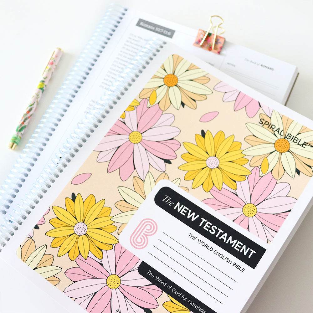 The Spiral Bible™ is now available as the entire New Testament, in the World English Bible. As a spiral bound Bible notebook, the pages lay completely flat so you can read, study, take notes, color, or draw. The pages are 8.5 x 11 with double-wide margins, a large font, and durable white notebook paper. Lay it flat and mark it up! The spiral binding is guaranteed not to break, or your money back!