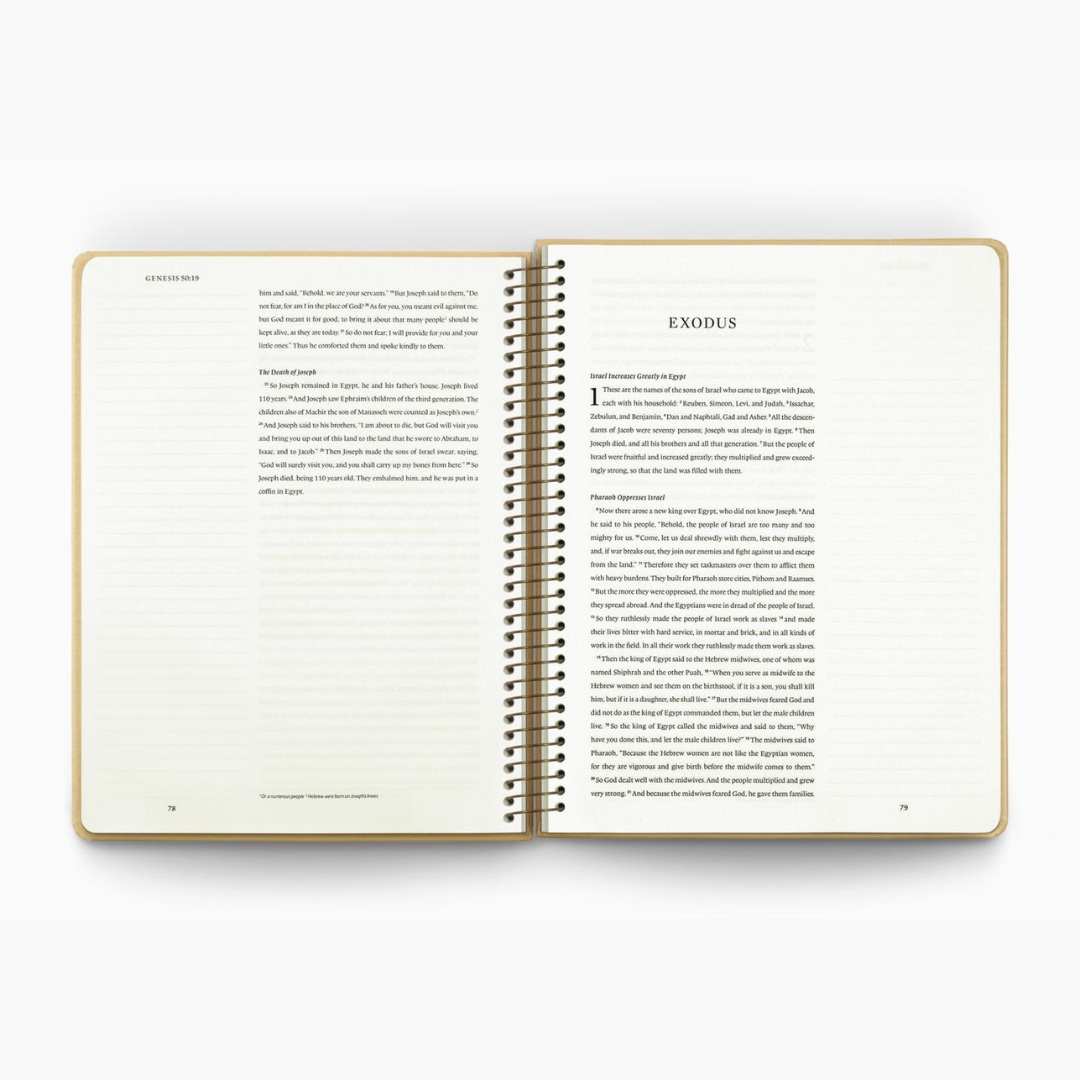 Our Spiral Bible™ is designed with wide margins, thick premium paper, and a durable spiral binding—making it easy to lay flat and write directly alongside Scripture. It’s the ideal Bible for journaling, studying, and capturing the personal insights God reveals to you as you read.