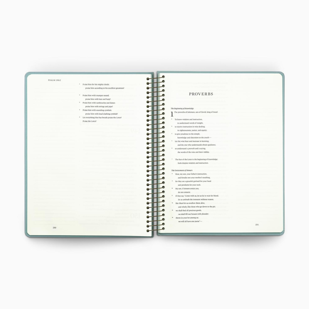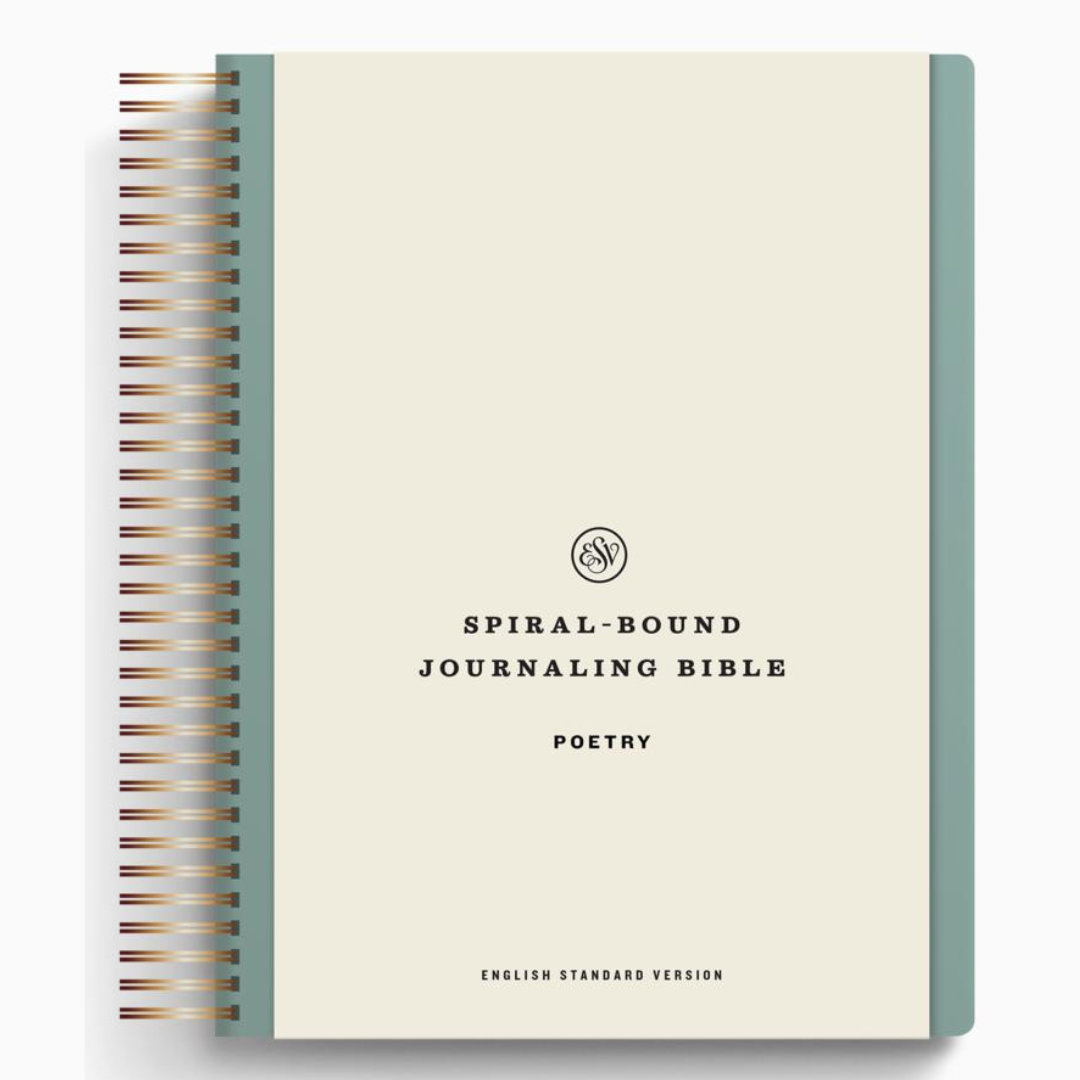 The ESV Spiral-Bound Journaling Bible, Poetry was created from the ground up to facilitate in-depth note-taking. It includes the 5 Poetical Books of the Old Testament—Job, Psalms, Proverbs, Ecclesiastes, and the Song of Solomon—in an inviting, easy-to-read layout with generous space for notes. The spiral-bound format lies flat for comfortable reading and writing. Designed to encourage deeper interaction with Scripture, this journaling edition is ideal for recording prayers and reflections.