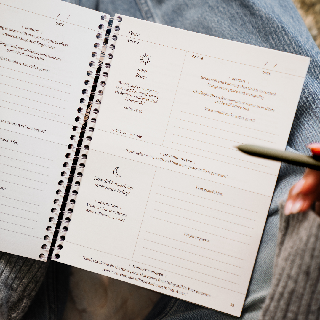 The morning prompts center your heart and mind on His Word, while the evening reflections invite you to pause, pray, and process what God has taught you. It’s the perfect rhythm to stay consistent and connected in your faith.