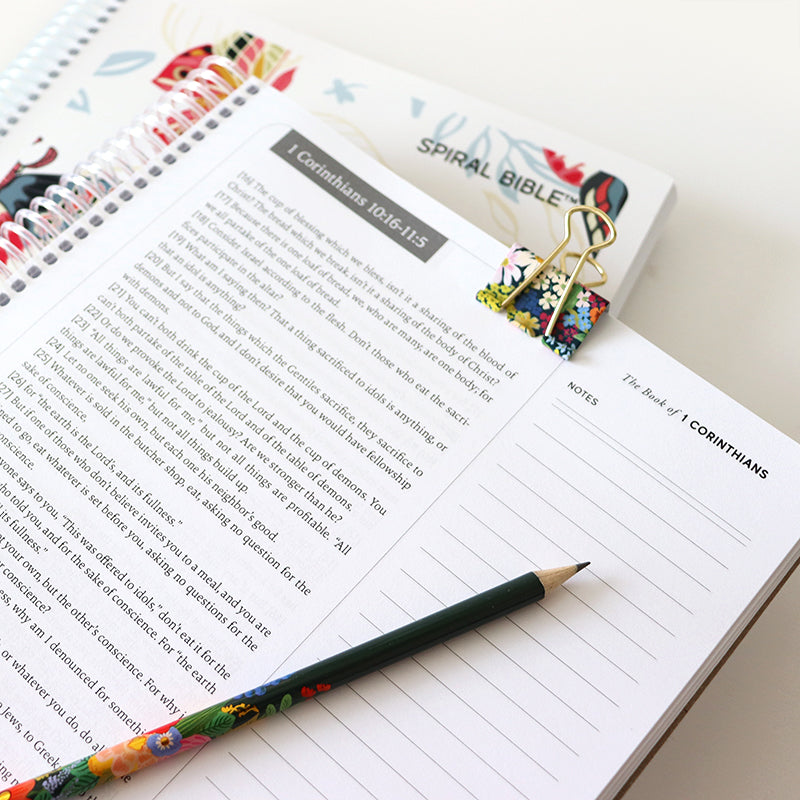 Our Spiral Bible™ is designed with wide margins, thick premium paper, and a durable spiral binding—making it easy to lay flat and write directly alongside Scripture. It’s the ideal Bible for journaling, studying, and capturing the personal insights God reveals to you as you read.