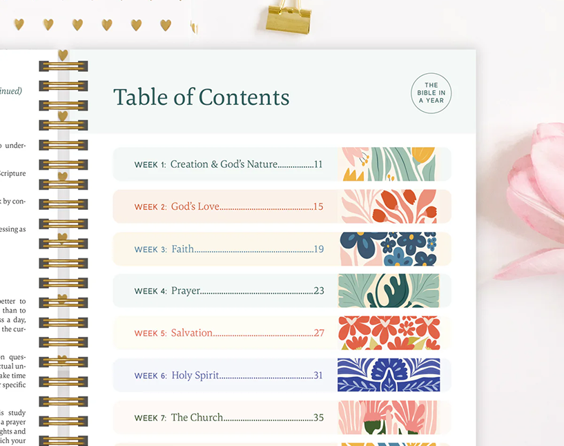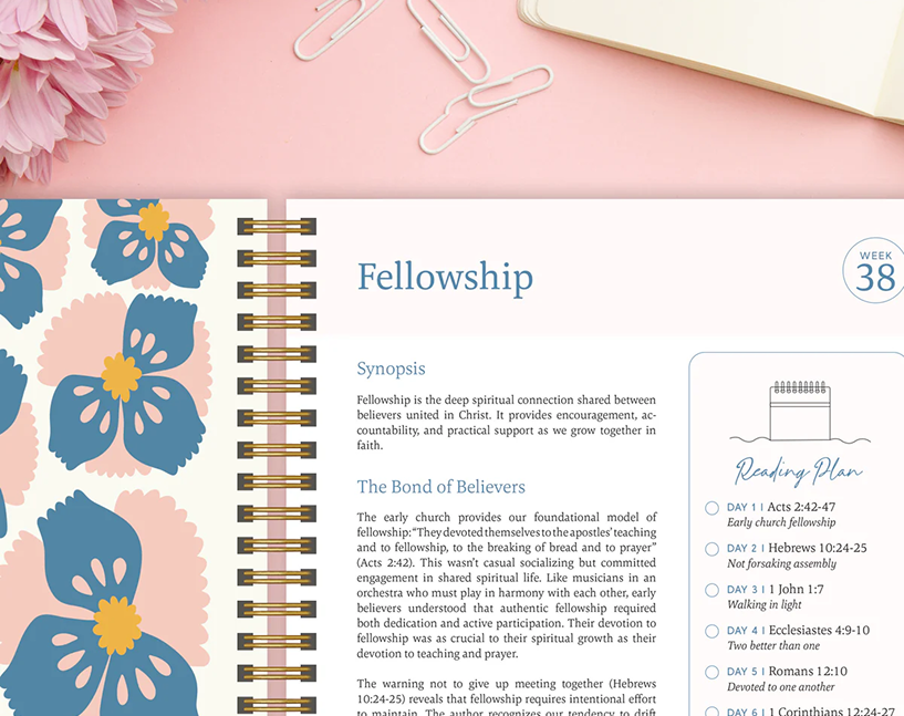 Reading becomes revelation. As you progress through the themed weeks, you're not just reading words—you're having conversations with God. The weekly blessing and application sections turn insight into action.